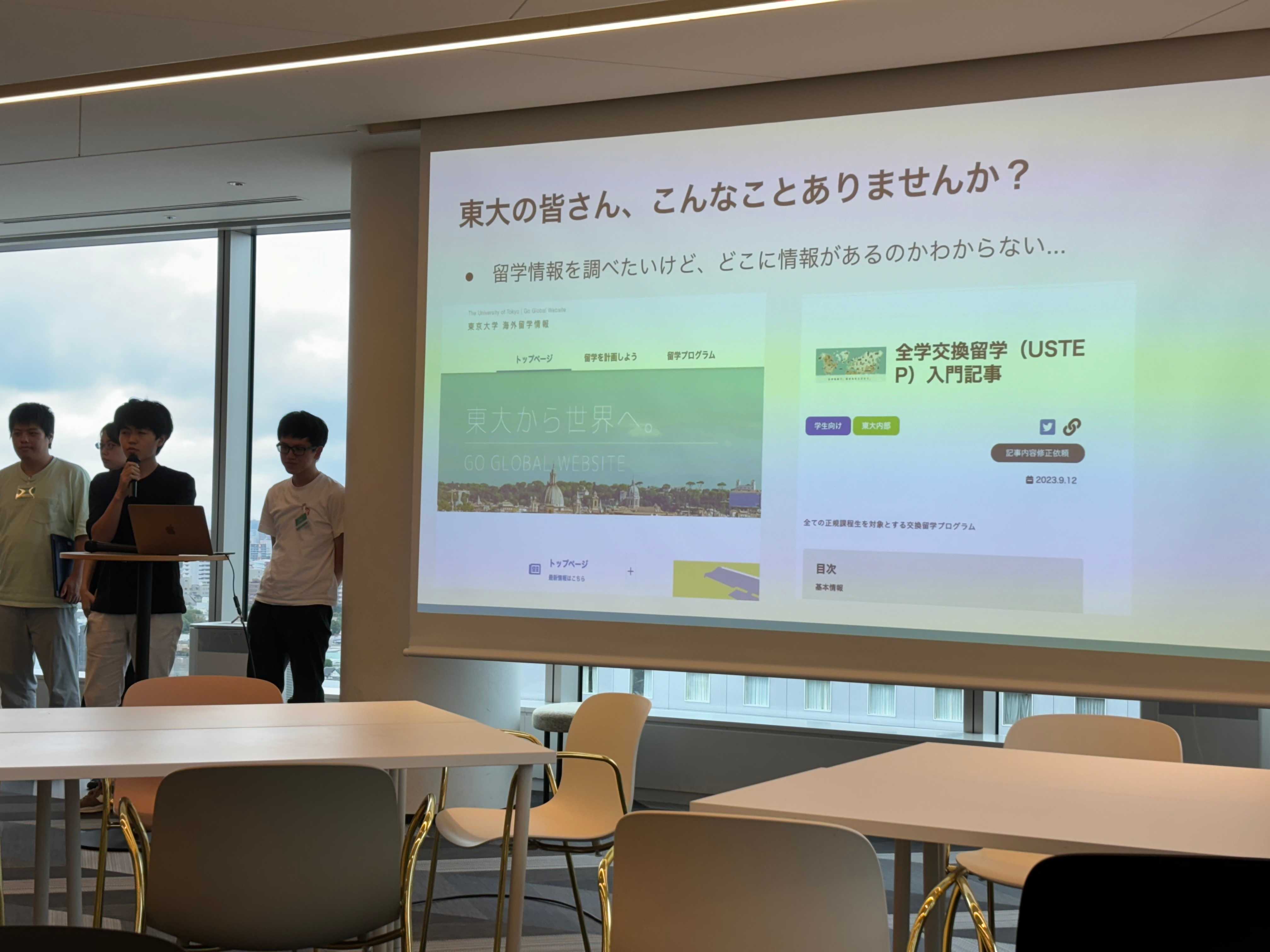 チーム A は、進振り情報やサークル情報といった東京大学に関する情報を学習させ、答えられるようにした「東大チャットボット」というアプリを開発しました。東京大学に関する情報は分散していることが多いですが、この ChatBot のおかげで東大生の日々の情報収集がより手軽になります。